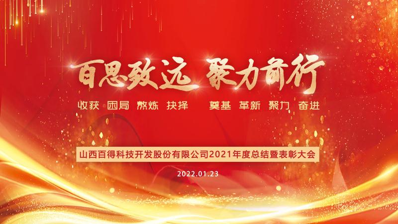 1月23日,百得科技2021年度總結暨表彰大會(huì )在公司召開(kāi)。董事長(cháng)韓凌、總裁徐維迪等領(lǐng)導及獲獎代表出席會(huì )議。根據疫情防控要求,各子公司以視頻直播形式參會(huì )。